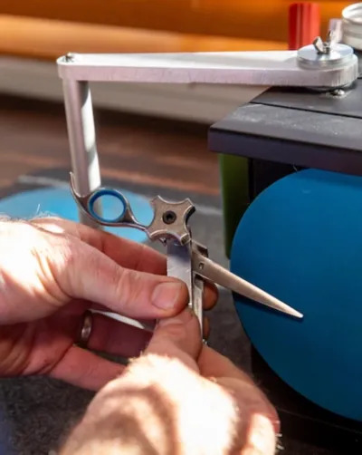 - Scissors are reassembled, and test cuts are performed for optimal performance.